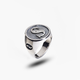Moneta Silver Initial S Ring: This elegant signet ring is crafted from polished and Matte silver and adorned with 0.09 ct white diamonds. Perfect for adding a touch of personal style to any outfit.