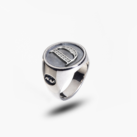 Moneta Vermeil Initial D Signet Ring: a luxurious and personalized piece. Crafted from 18K yellow gold vermeil and adorned with white diamonds, this Signet ring is perfect for adding a touch of elegance to your collection.