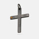 Crafted in oxidized silver, this Latin The Cross amulet features a bold, side-set triangle yellow sapphire, adding a striking contrast to the traditional design.