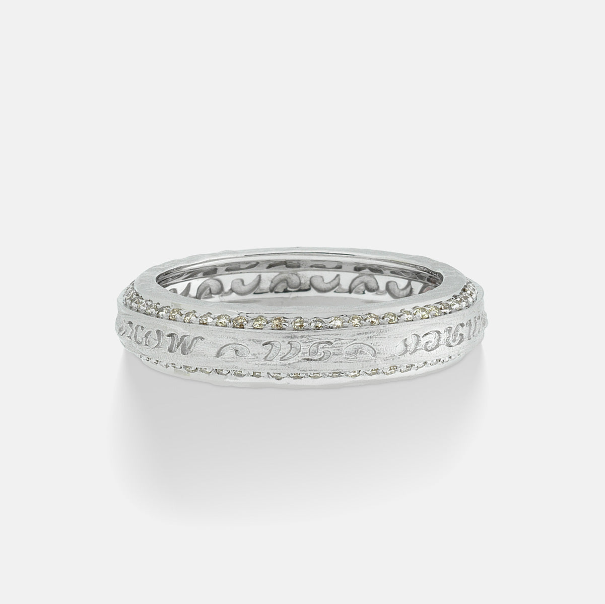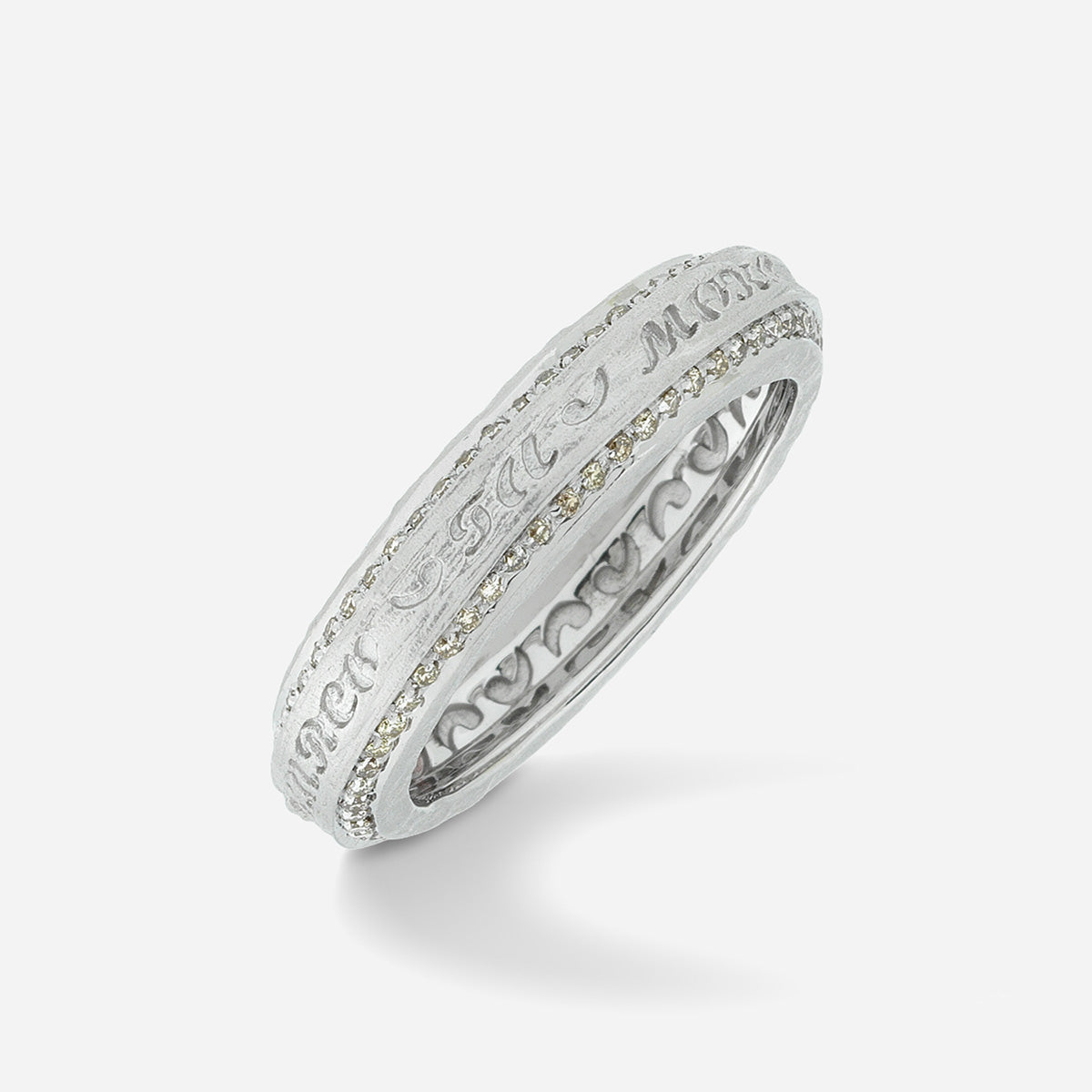 The Other Half Narrow Double Edge Gemstone Band in 18K white gold with double rows of champagne diamonds brings refined elegance and a subtle sparkle.