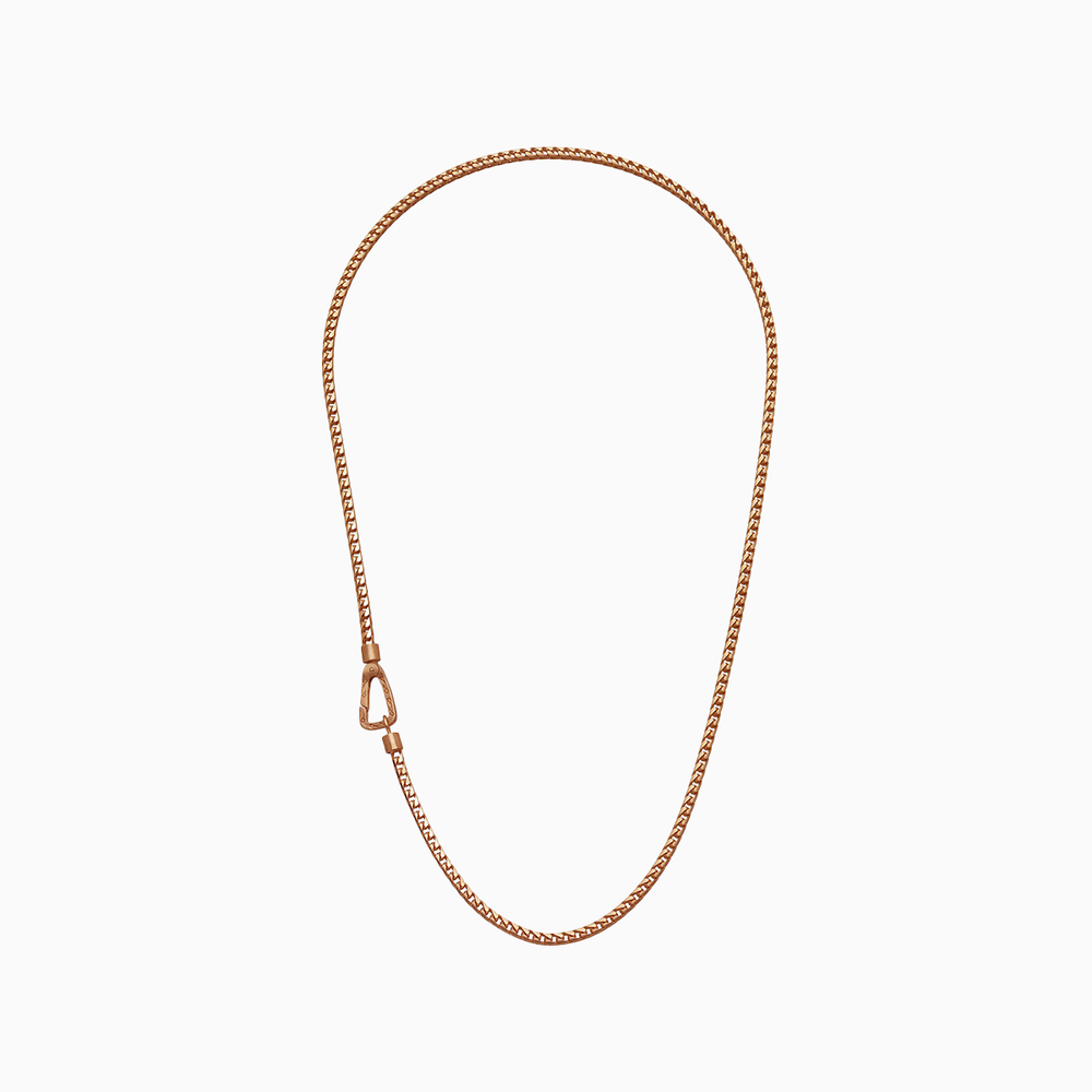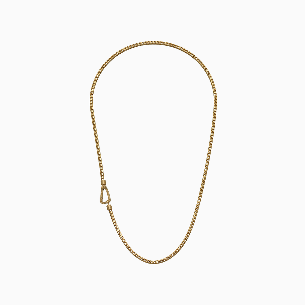 The Ulysses Mesh Necklace, at 52 cm, 57 cm, 62 cm features 18K yellow gold matte vermeil, creating a refined yet textured look. This piece combines the timeless allure of gold with the intricate mesh design, making it a versatile addition to any collection.