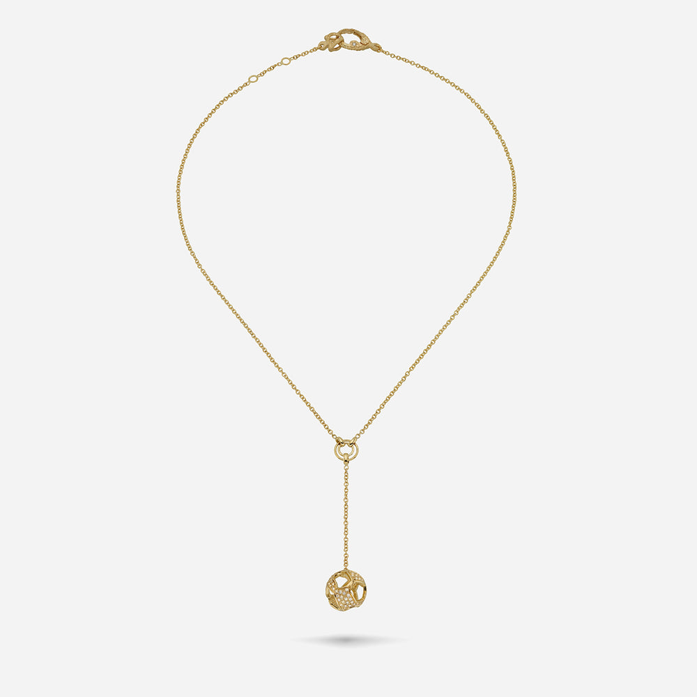 The Explosion Of Joy Grand Pendant in 18K yellow gold showcases pave-set white diamonds totaling 0.64 carats. This bold, elegant pendant necklace adds a luxurious touch to any ensemble.