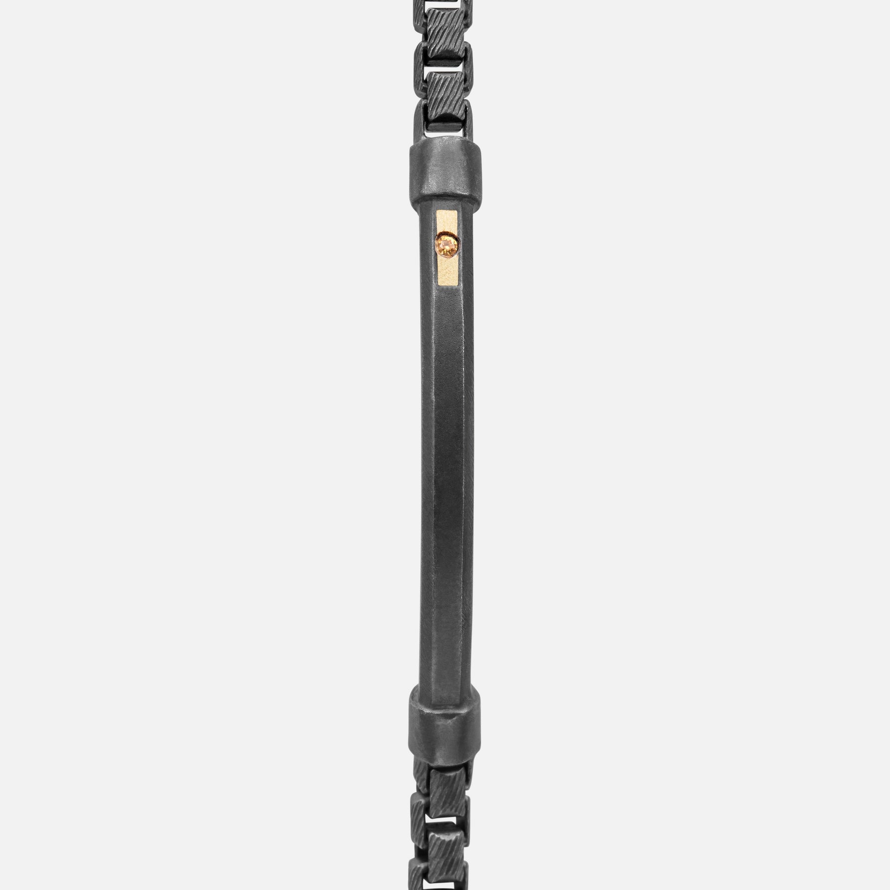 The Ulysses ID Gold and Sapphrie is a bold and luxurious piece, featuring a matte ID chain adorned with 0.012 carats of yellow sapphire. This necklace is perfect for those who appreciate understated luxury and a modern, refined look.