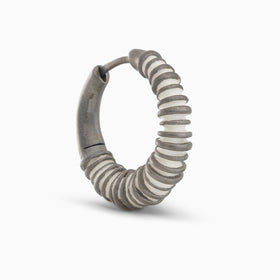 Gli orecchini a cerchio Satellite Acies racchiudono un fascino celeste con la loro finitura in argento ossidato e l'accattivante smalto blu. Questi orecchini sono una testimonianza dell'arte della gioielleria raffinata, offrendo un pezzo audace che risuona con l'essenza del lusso. Progettati per l'uomo che รจ sia un intenditore che un trendsetter, sono la miscela perfetta di artigianato tradizionale e stile moderno.