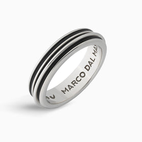 ACIES SLIM BAND, Polished Silver & Black Enamel