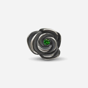The Diamonds'N'Roses Green Sapphires Earring is crafted in oxidized silver and set with 0.031 ct pave green sapphires, offering a bold and luxurious style.