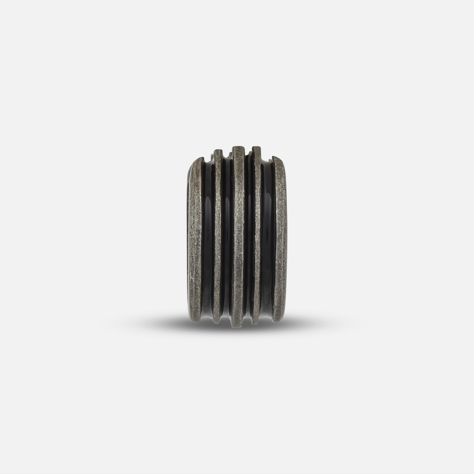 Acies Ear Cuff in Oxidized Silver and Black Enamel: a minimalist expression of strength and precision. The oxidized silver body is traced with a sleek line of black enamel, creating a bold yet understated accent that embodies timeless craftsmanship and refined individuality.