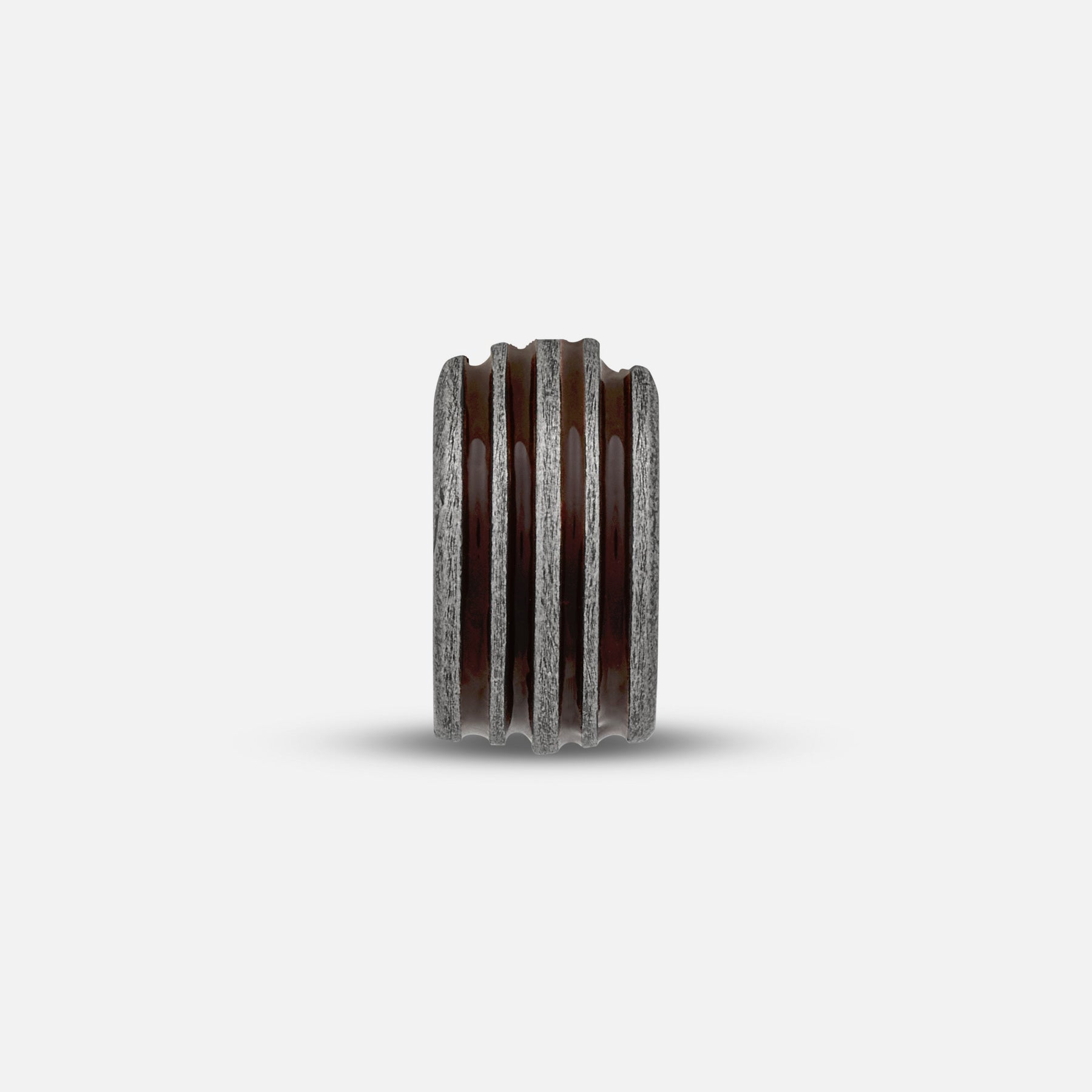 Acies Ear Cuff in Oxidized Silver and Brown Enamel: a grounded expression of modern craftsmanship. The oxidized silver form is traced with deep brown enamel, creating a warm, sculptural accent that merges texture, depth, and refined minimalism.