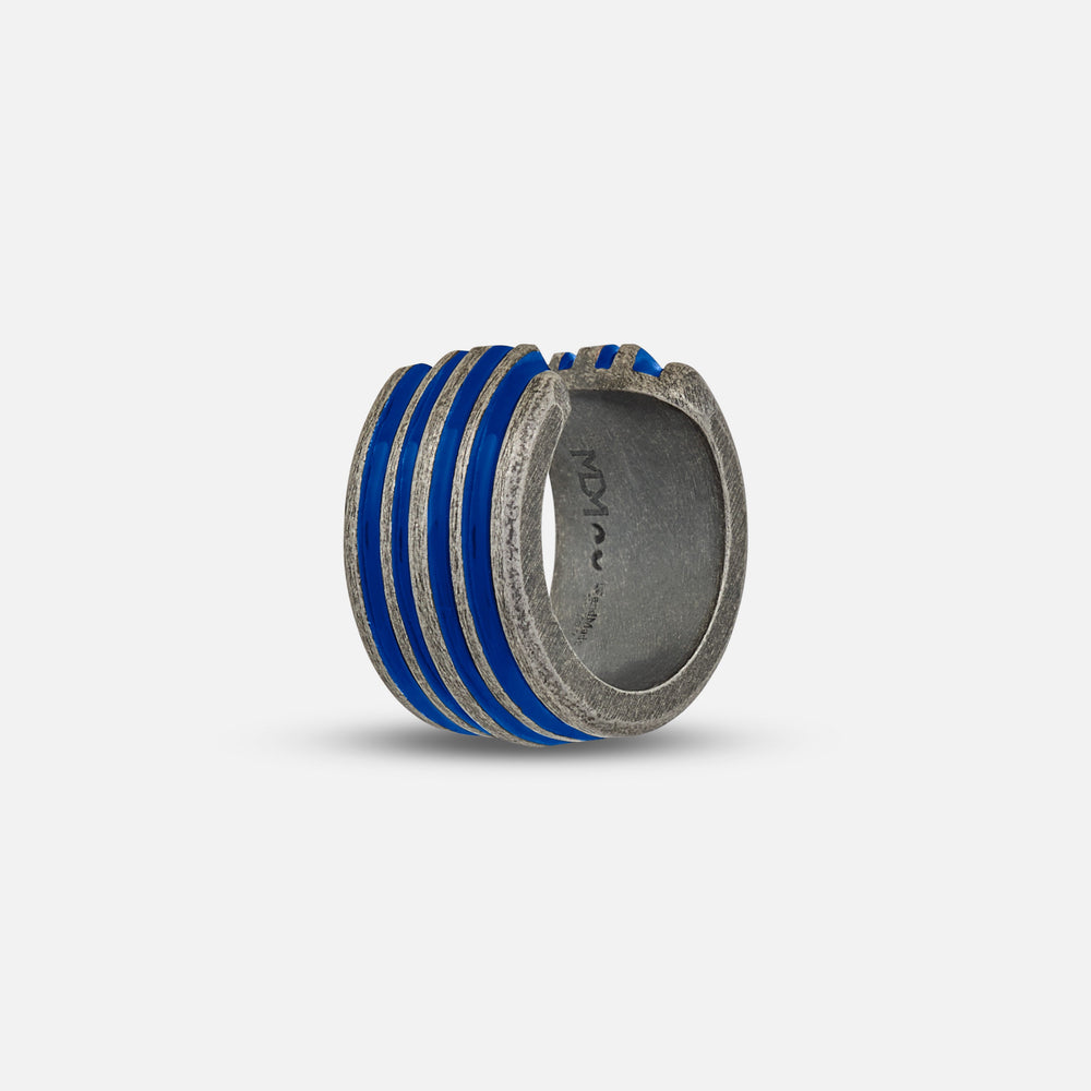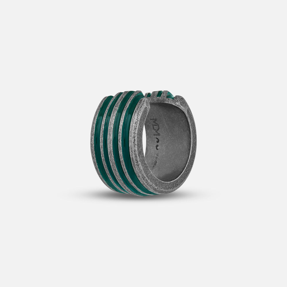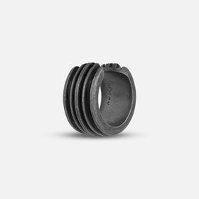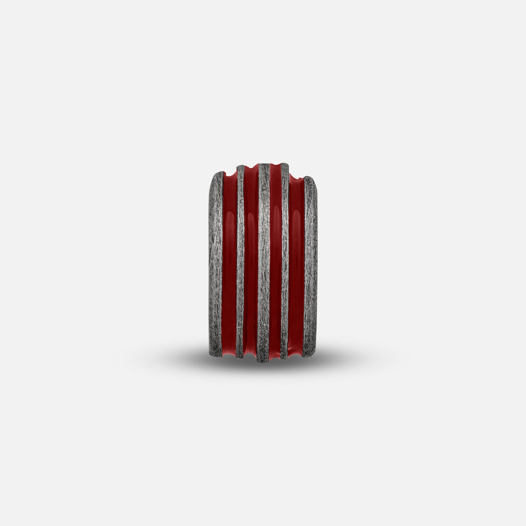 Acies Ear Cuff in Oxidized Silver and Red Enamel: a refined expression of intensity and design. The oxidized silver surface is traced with smooth red enamel, creating a sculptural accent that captures light and depth with confident sophistication.