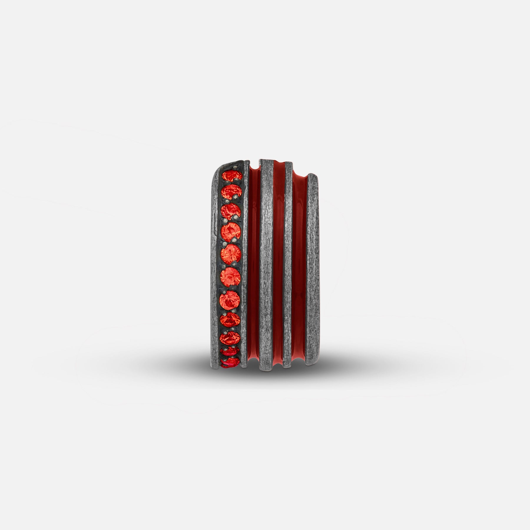 This ACIES Gemstone Ear Cuff in oxidized silver makes a bold yet refined statement for men. Handcrafted in Italy, it features vivid red enamel accents and red sapphires that catch light with restrained shimmer. The cuff follows the natural curve of the ear, creating a confident, contemporary silhouette. Ideal for layering or wearing alone, it expresses modern masculinity with quiet sophistication and precise craftsmanship.