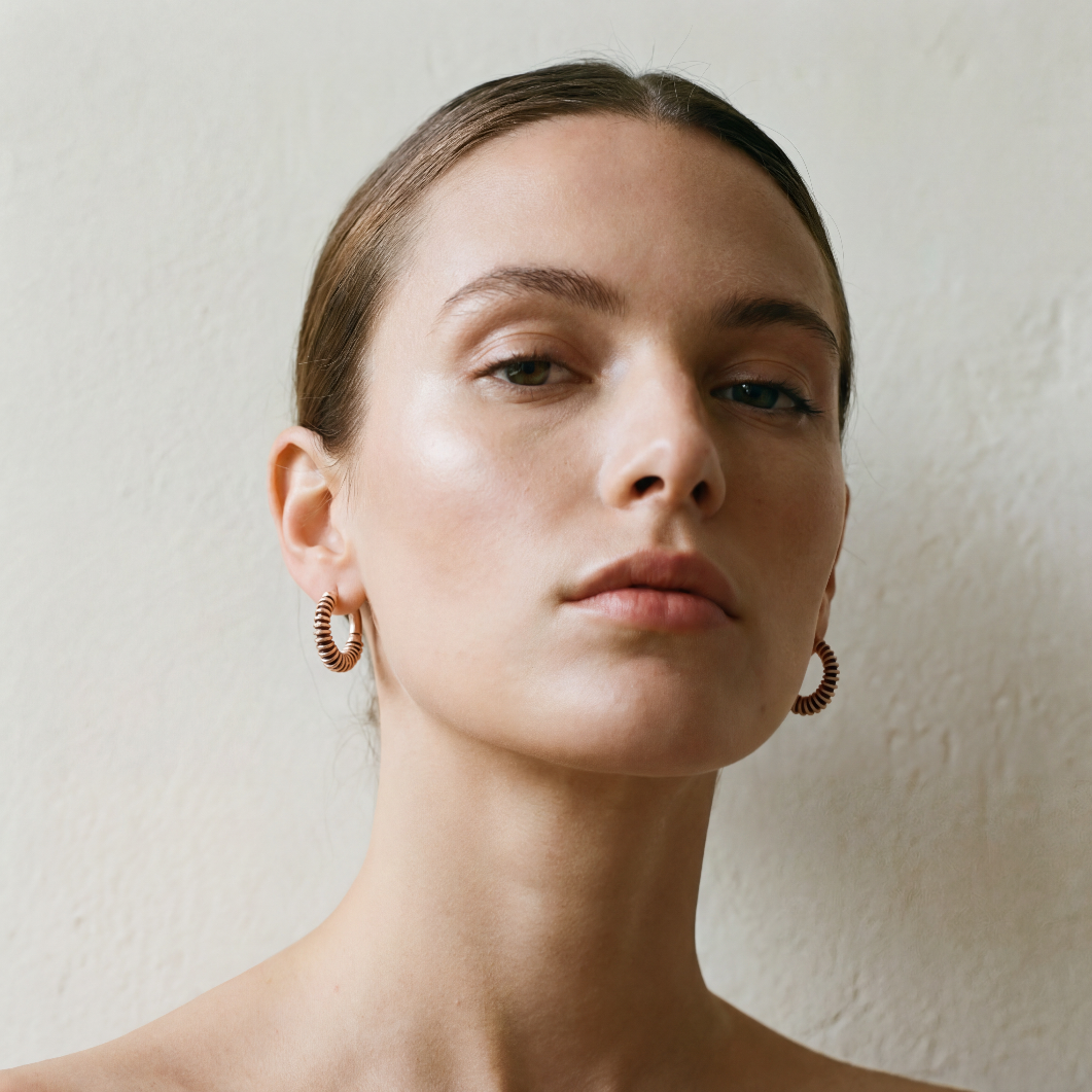 The Acies Satellite Hoop Rose Matte Vermeil Earrings are a symphony of luxury and style. With their 18K rose gold matte vermeil, these earrings cast a warm, subtle sheen that captures the essence of refined elegance. The brown enamel inlay introduces an earthy sophistication, making these earrings a perfect accessory for the man who is as grounded as he is stylish.