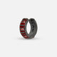 Acies Mini Pavé Hoop Earring in Oxidized Silver with Red Enamel and Red Sapphires: a striking harmony of strength and radiance. The oxidized silver silhouette is traced with deep red enamel and pavé-set red sapphires, creating a sleek, modern form that embodies confidence and precision.