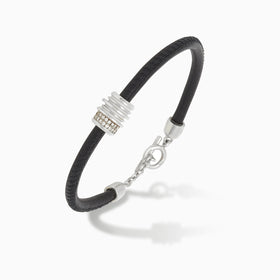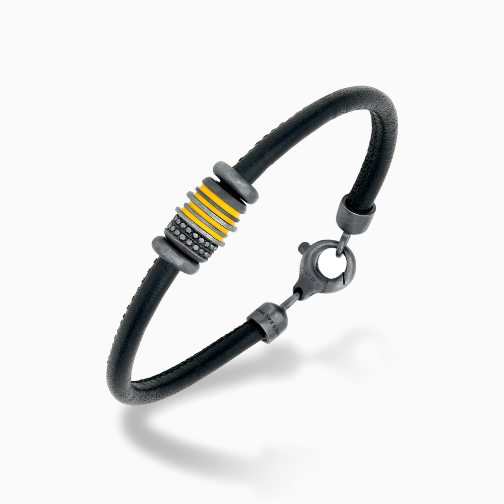 ACIES Sliding Gemstone Bracelet Yellow Gold Matte Vermeil, Black Enamel, Black Leather, Black Diamonds