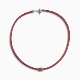 The Acies Roller Necklace redefines the essence of contemporary luxury. This piece features an oxidized silver pendant, its surface artfully adorned with sleek black enamel. The pendant’s minimalist design is complemented by the timeless elegance of a leather cord, creating a statement piece that is both sophisticated and versatile. It’s the perfect accessory for the man who appreciates the finer details and the enduring appeal of classic style.