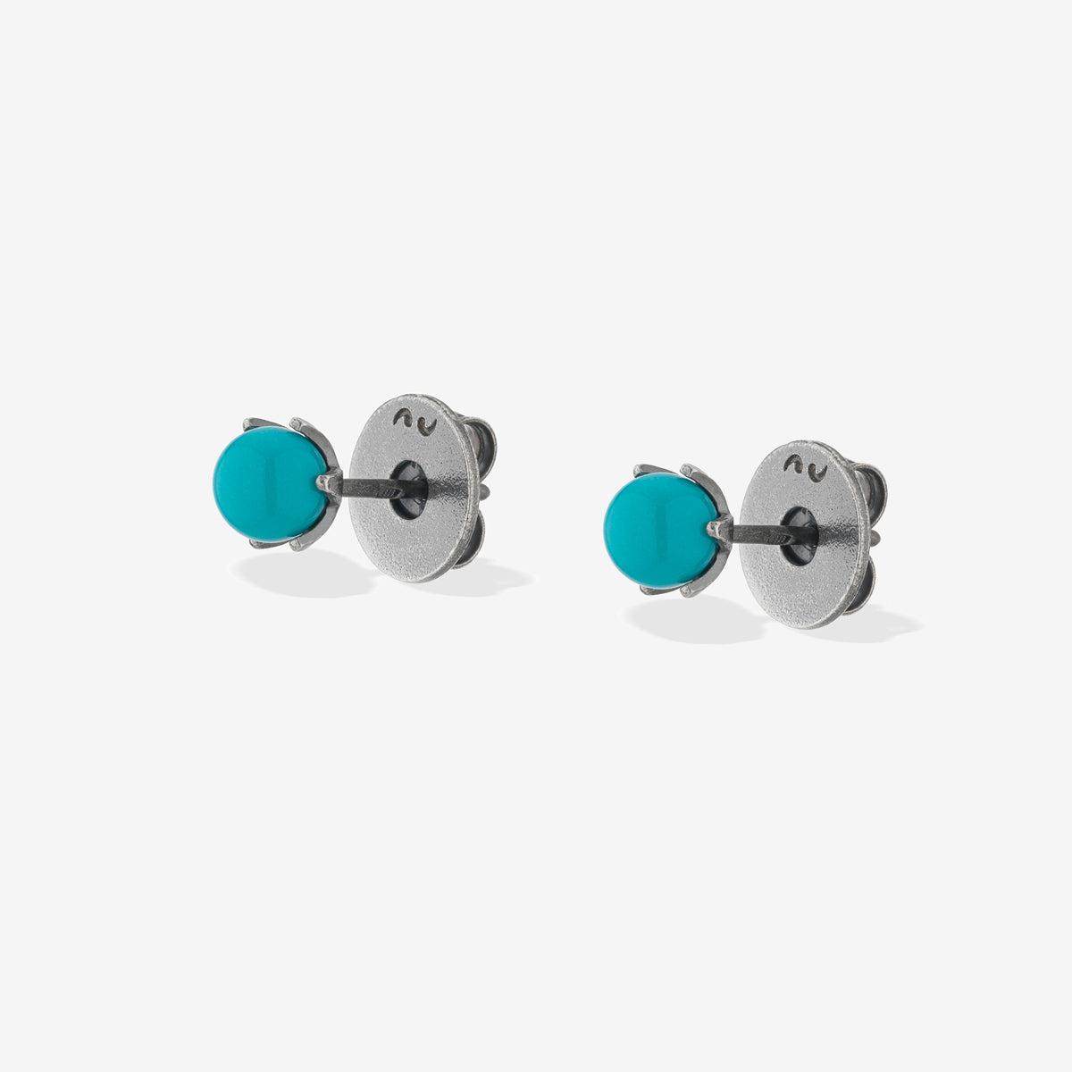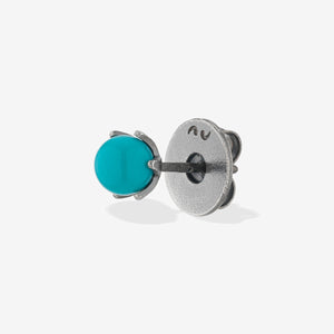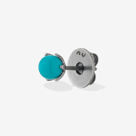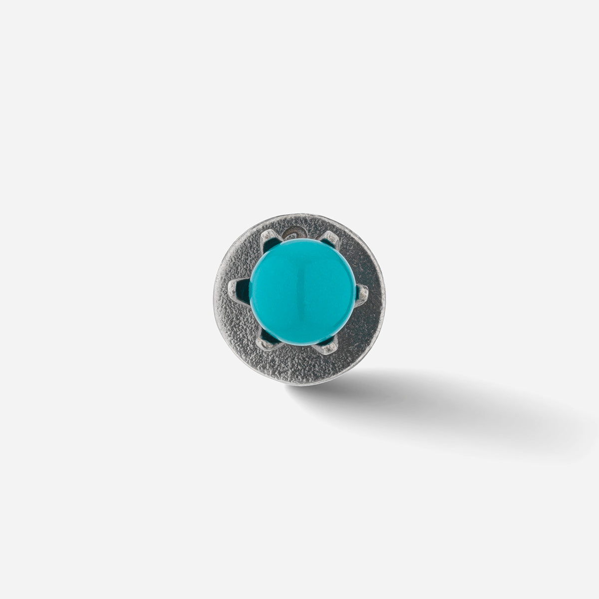 The Calyx Gemstone Stud Earring sets vibrant turquoise into oxidized silver, creating a grounded interplay between rugged metal and vivid mineral color. Its compact profile offers a subtle yet character-driven accent for modern men’s jewelry styling.