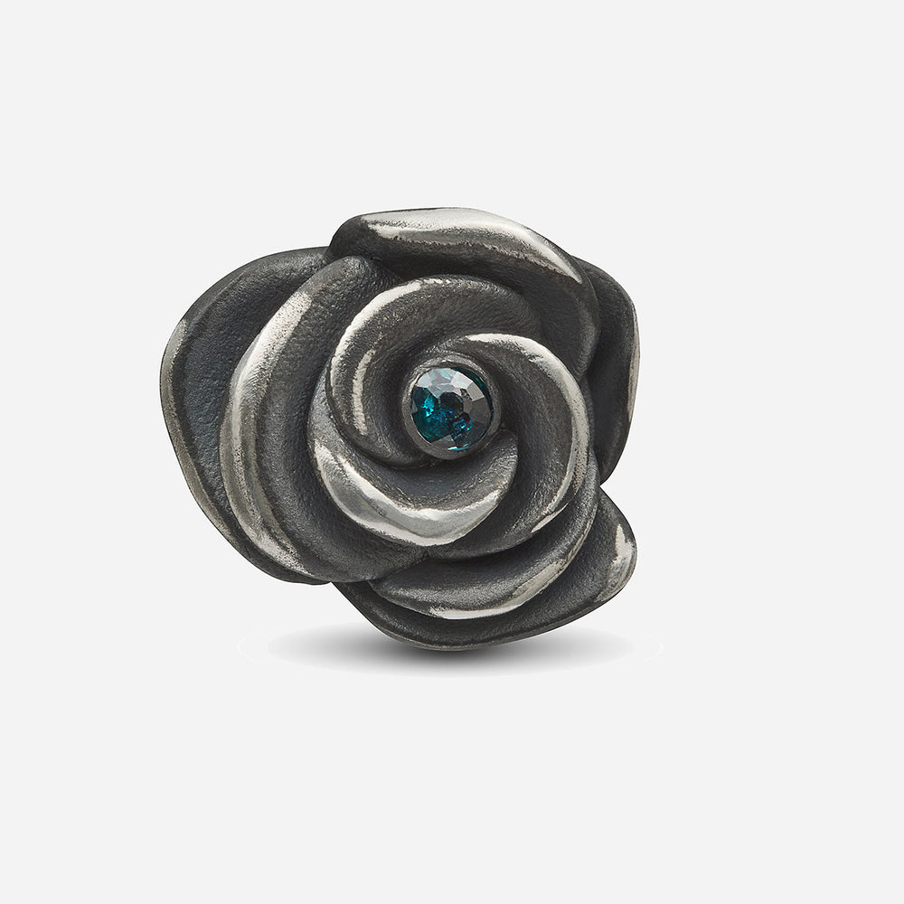 The Diamonds'N'Roses Red Sapphires Pin is crafted from polished silver and features pave set red sapphires. A modern, bold piece to enhance any collection.