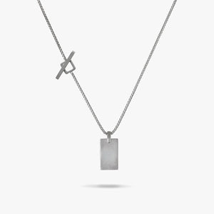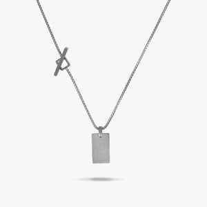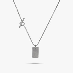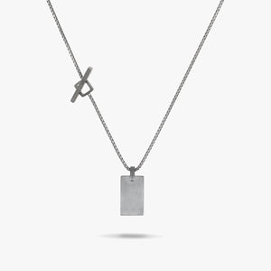The ELAN Silver Tag Necklace with Black Enamel is designed to add a sleek, modern touch to any outfit. The black enamel contrasts beautifully with the oxidized silver, creating a bold yet sophisticated look.
