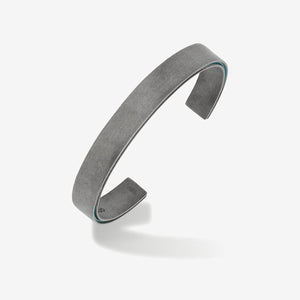 The ELAN Wide Cuff with Black Enamel is a bold and versatile piece with its wide oxidized silver band and sleek black enamel inlay, perfect for any occasion.
