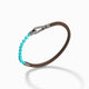 The Lash Mini Turquoise Beads Bracelet, crafted with smooth brown Italian leather, combines subtle turquoise tones with luxurious leather for a polished, modern accessory. Perfect for adding a touch of elegance to your everyday style.