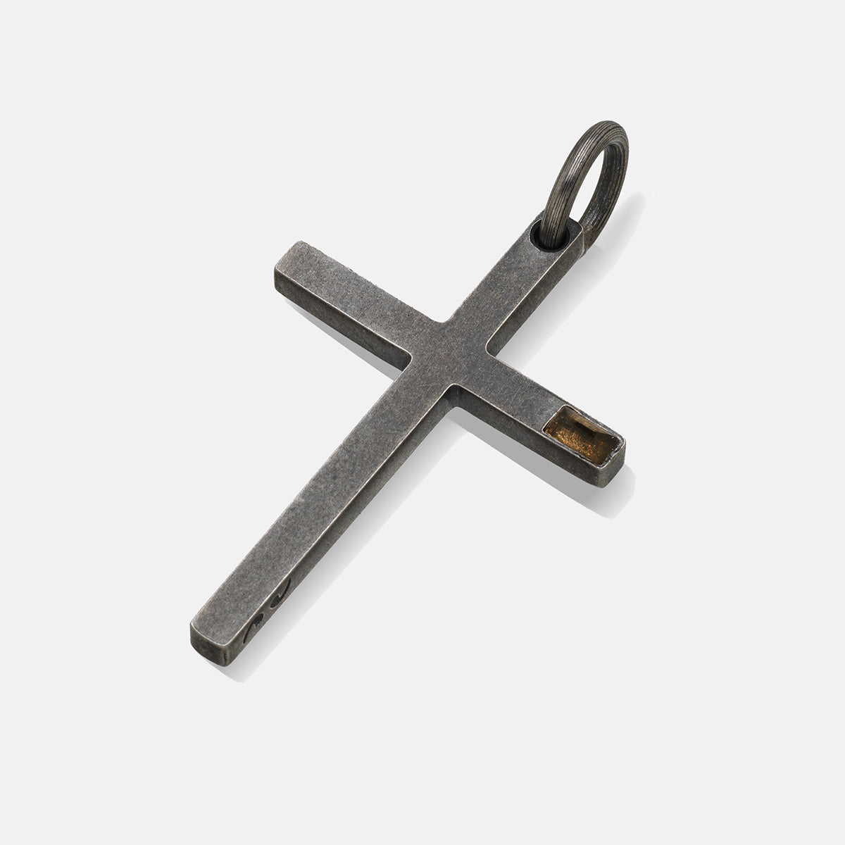 This Latin Cross Amulet in oxidized silver features a single side-set citrine, adding a refined touch to a classic symbol.