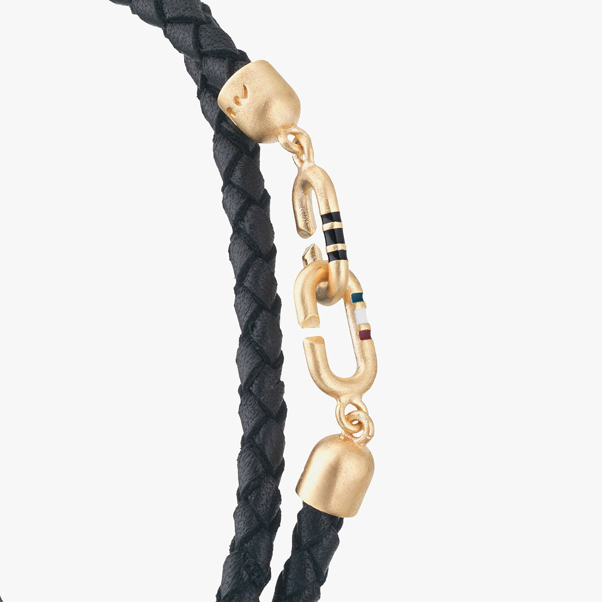 LINK Double Wrap Enamel and Leather Bracelet Yellow Gold Vermeil, Black Enamel, Black Leather