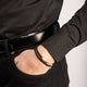 The Link Double Black Enamel and Leather Vermeil Bracelet combines the richness of black enamel with smooth leather, finished with an 18K yellow gold vermeil clasp. Its double-wrap design offers timeless elegance and bold sophistication.