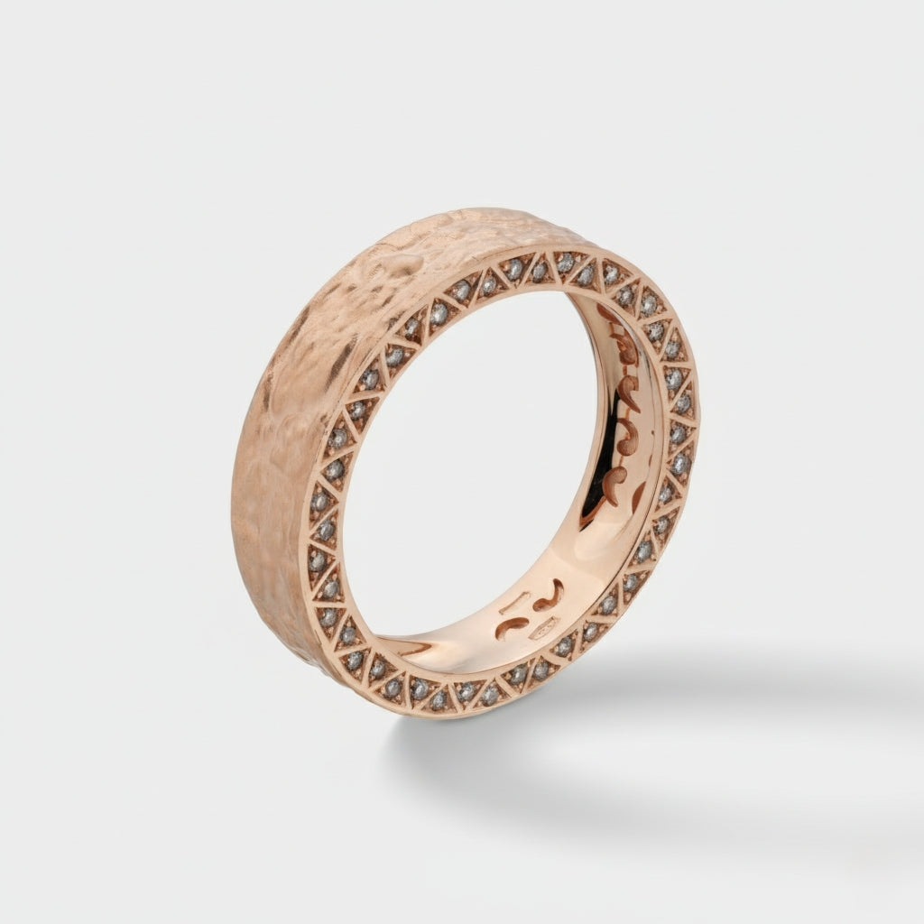 18kt Textured Rose Gold Manawa Ring with Champagne Diamonds