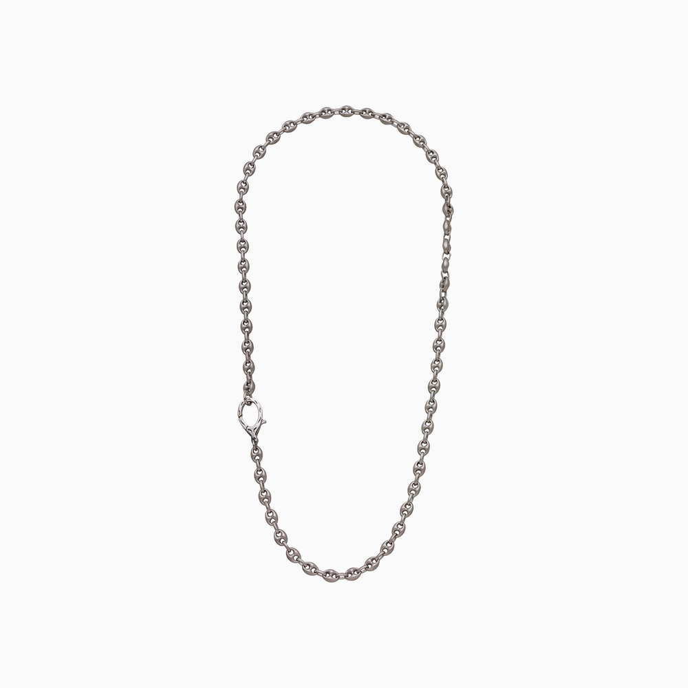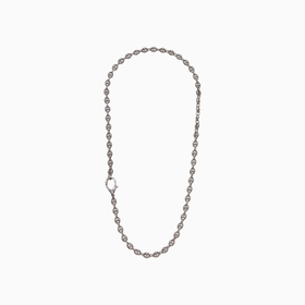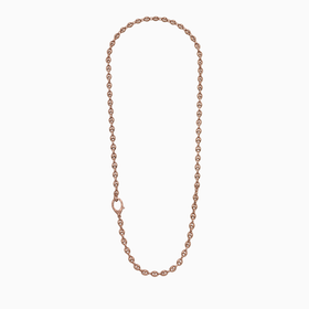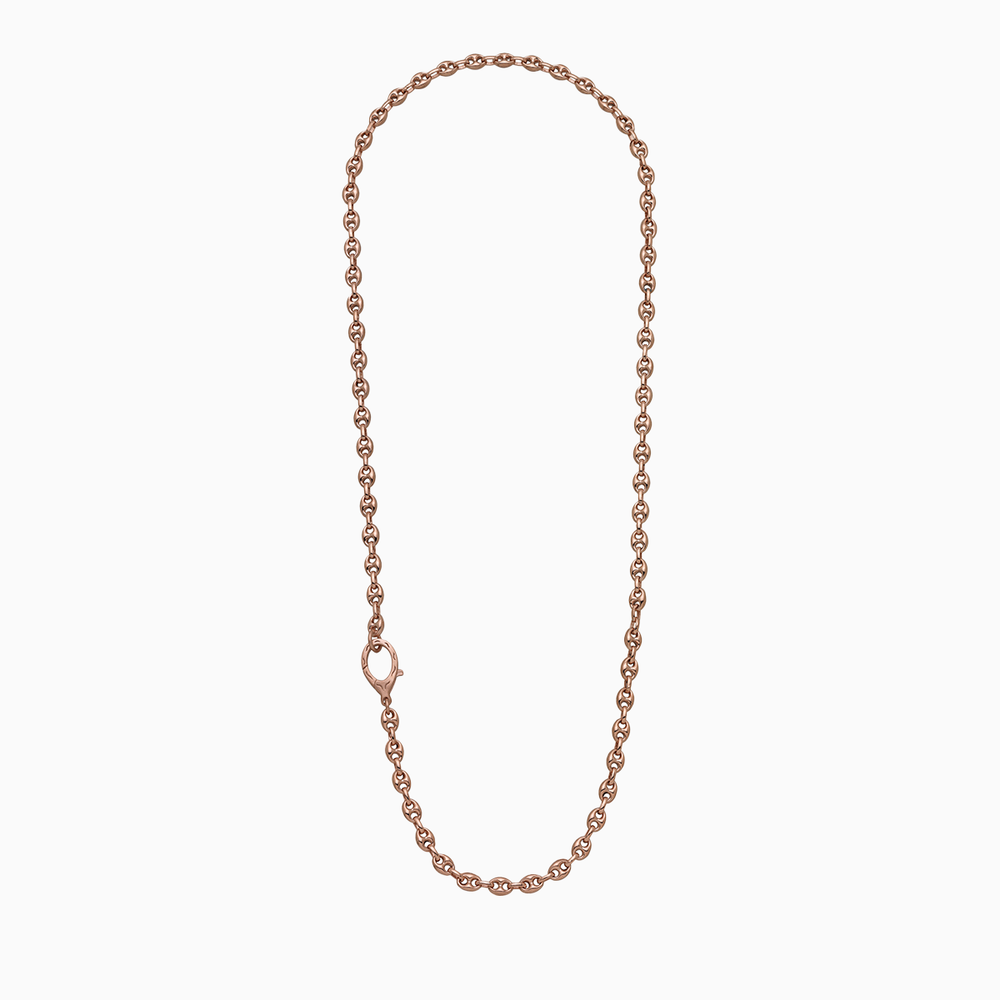The Ulysses Marine Necklace in 18K rose gold vermeil is a luxurious piece that combines a polished chain with a matte clasp. The warm tones of the rose gold are enhanced by the contrast in textures, making this necklace a sophisticated choice for any occasion.