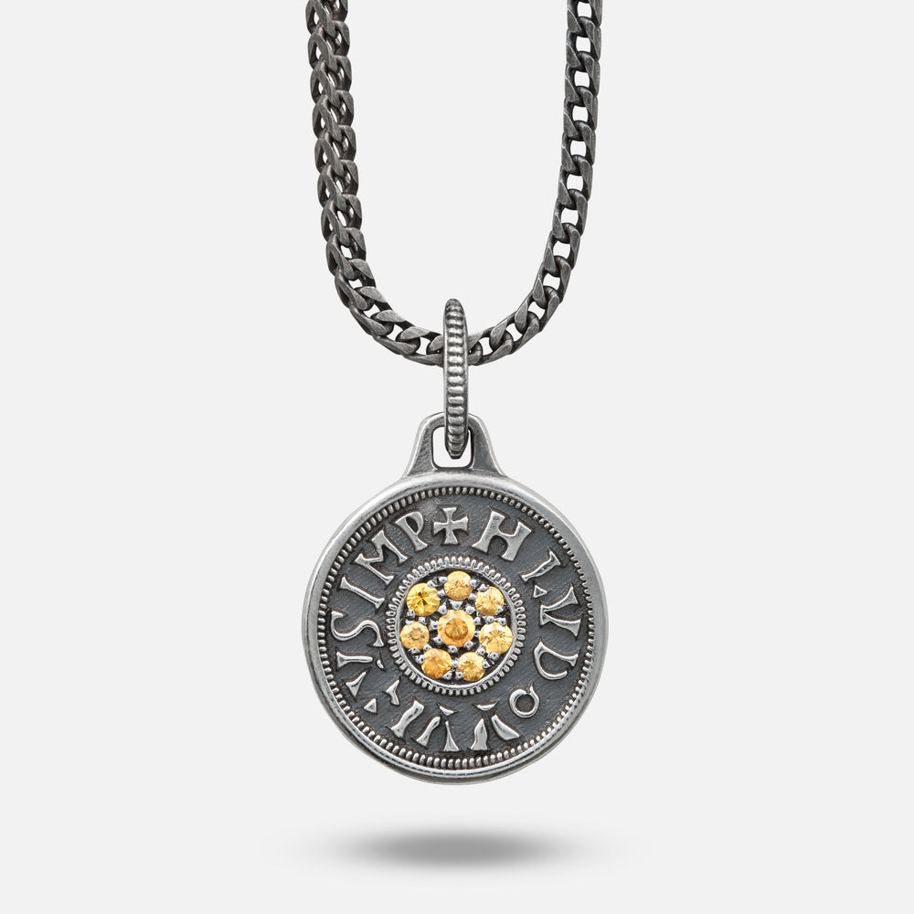 The Moneta Core Pavé Pendant balances precision with restraint. Handcrafted in Italy from polished and oxidized silver, it features a pavè set black diamonds, handset close for subtle texture and contrast. Its clean form makes it easy to wear alone or layered. Designed to integrate into daily ritual without demanding attention.