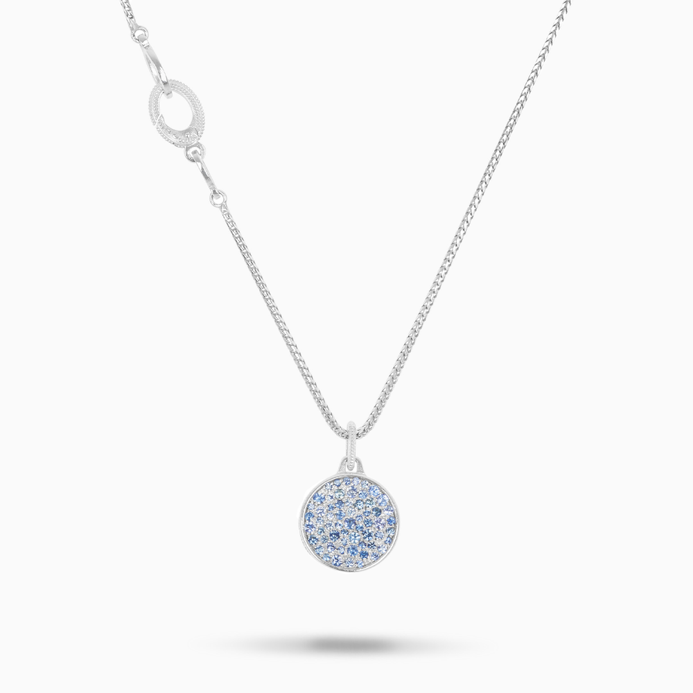 MONETA Gemstone Pendant Matte Silver, Blue Sapphires