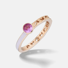 The Orion Ring unites the warmth of rose gold with the cool intensity of violet enamel and a 0.25-carat blue sapphire. Its harmonious form and refined detailing capture the expressive craftsmanship central to the Orion collection.