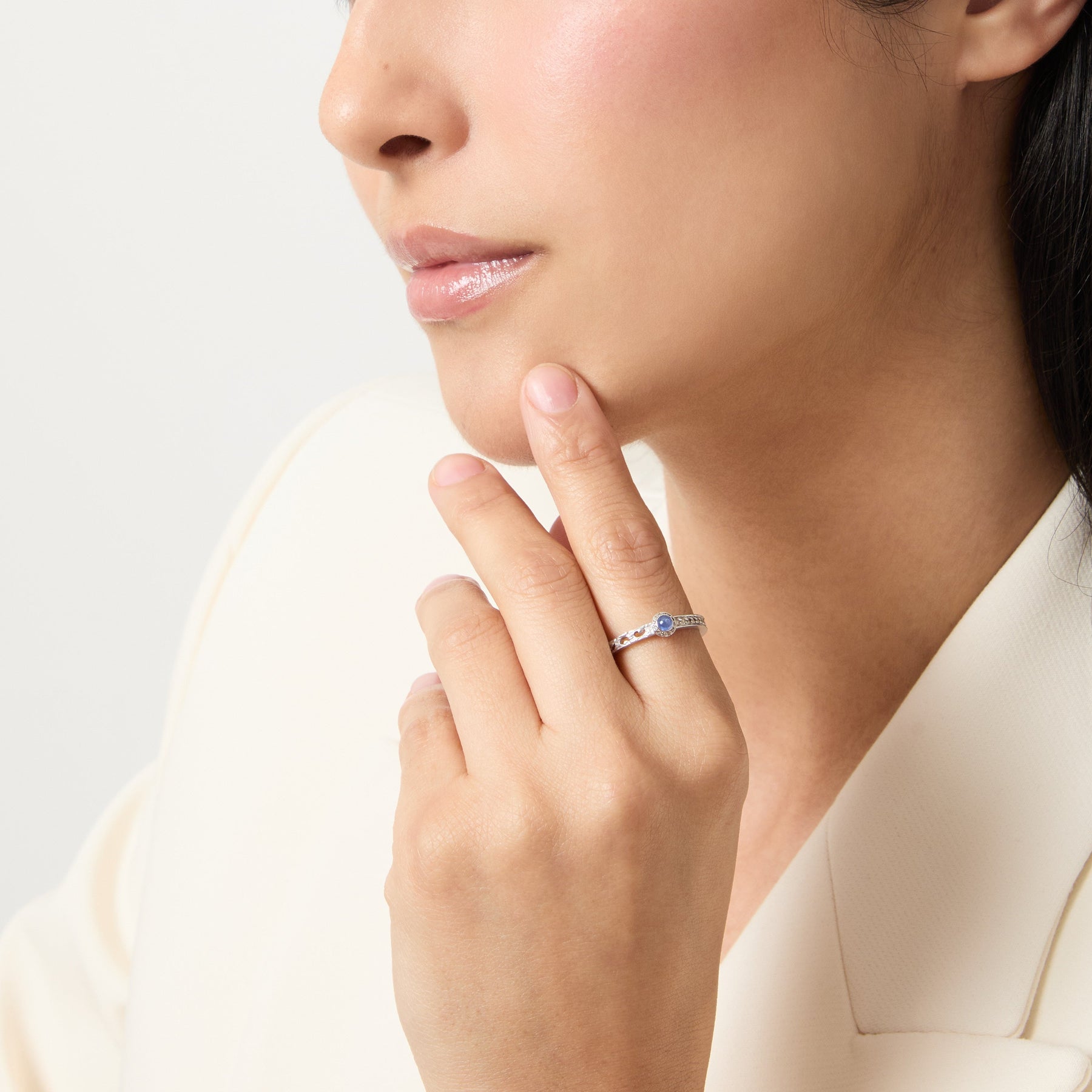Handcrafted in 18k white gold, this Orion oval ring unites 0.26 carat of champagne diamonds with a 0.28 carat blue sapphire. The design evokes celestial symmetry, luminous, poised, and sculpted with the quiet precision of Italian craftsmanship.