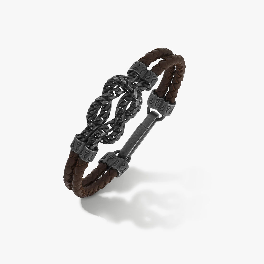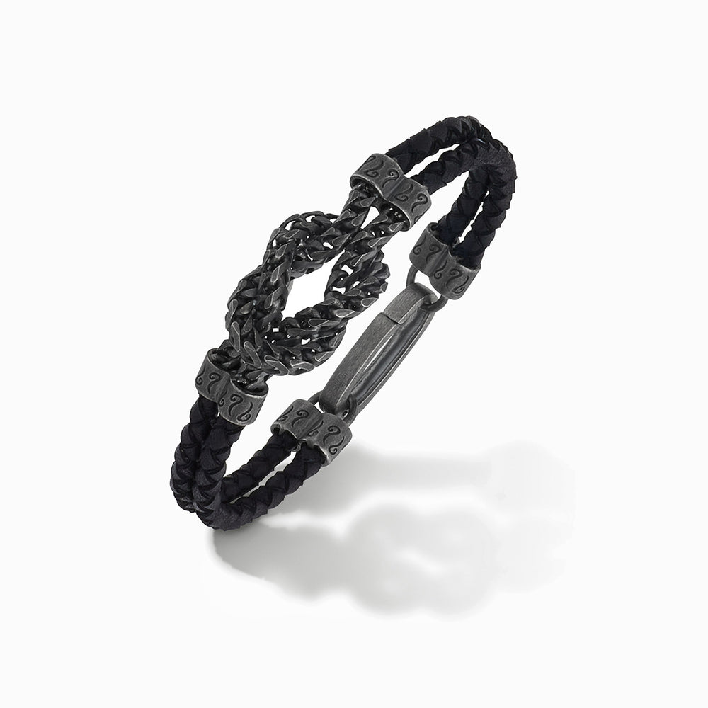 The Lash Chain Reef Knot and Green Leather Bracelet brings together rugged craftsmanship and luxurious materials. The oxidized silver chain reef knot design combined with green leather creates a bold yet refined accessory. Ideal for adding a touch of sophistication to any outfit.