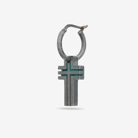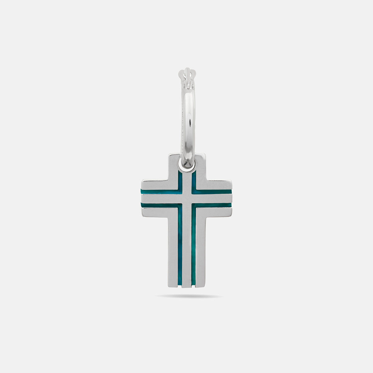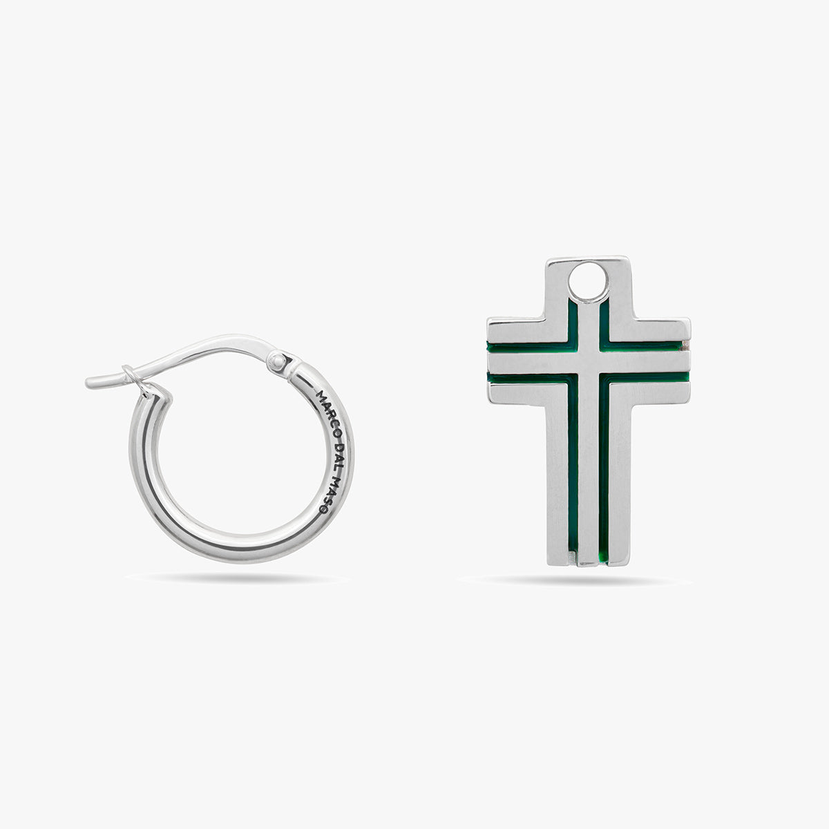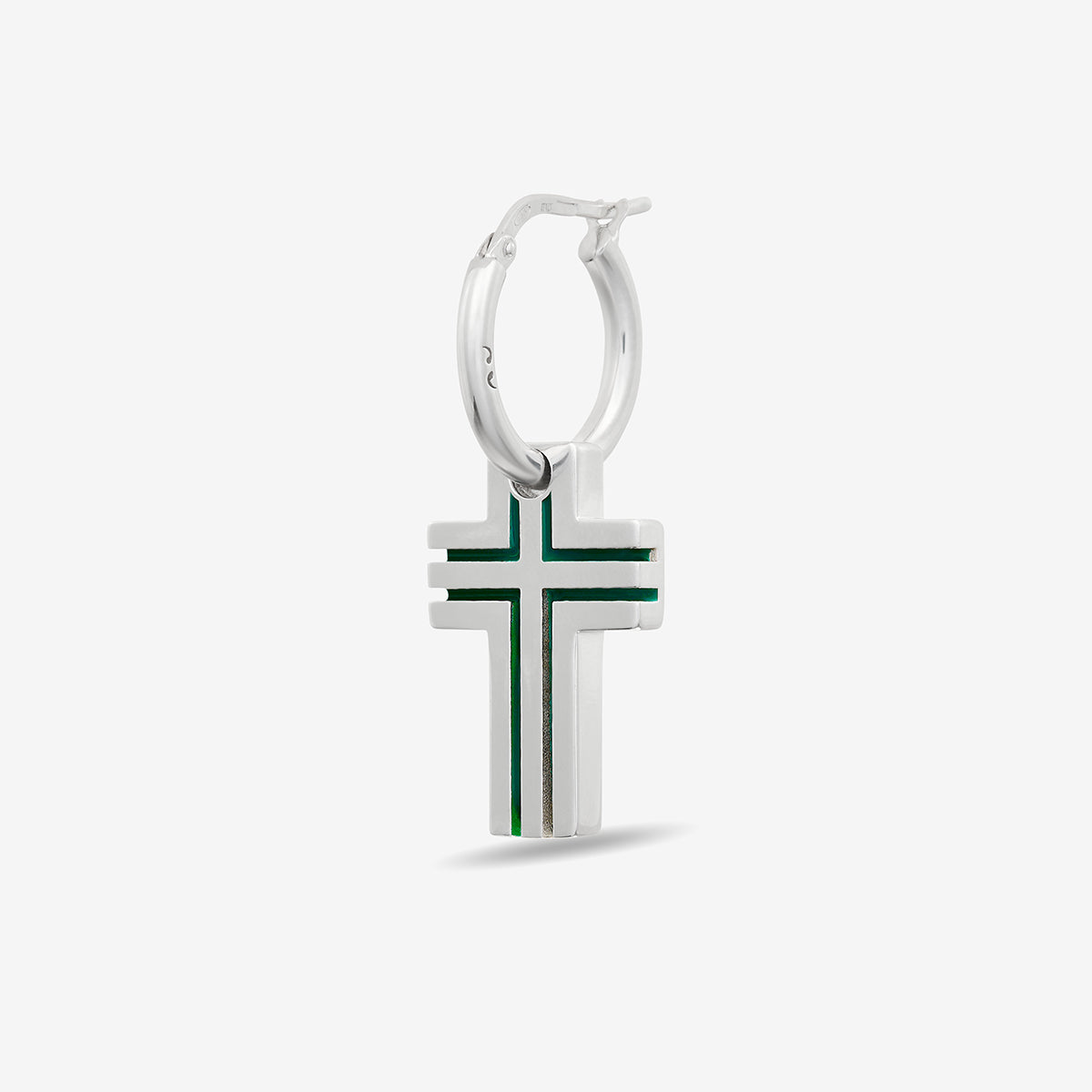 These The Cross Double Enamel Earring in polished silver are crafted with dual green enamel details, blending classic symbolism with a sleek, modern finish. A perfect choice for those who value elegance in their accessories.