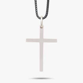 This The Cross Minimal Latin Pendant in oxidized silver is ideal for a minimalist style, designed to be versatile and timeless.