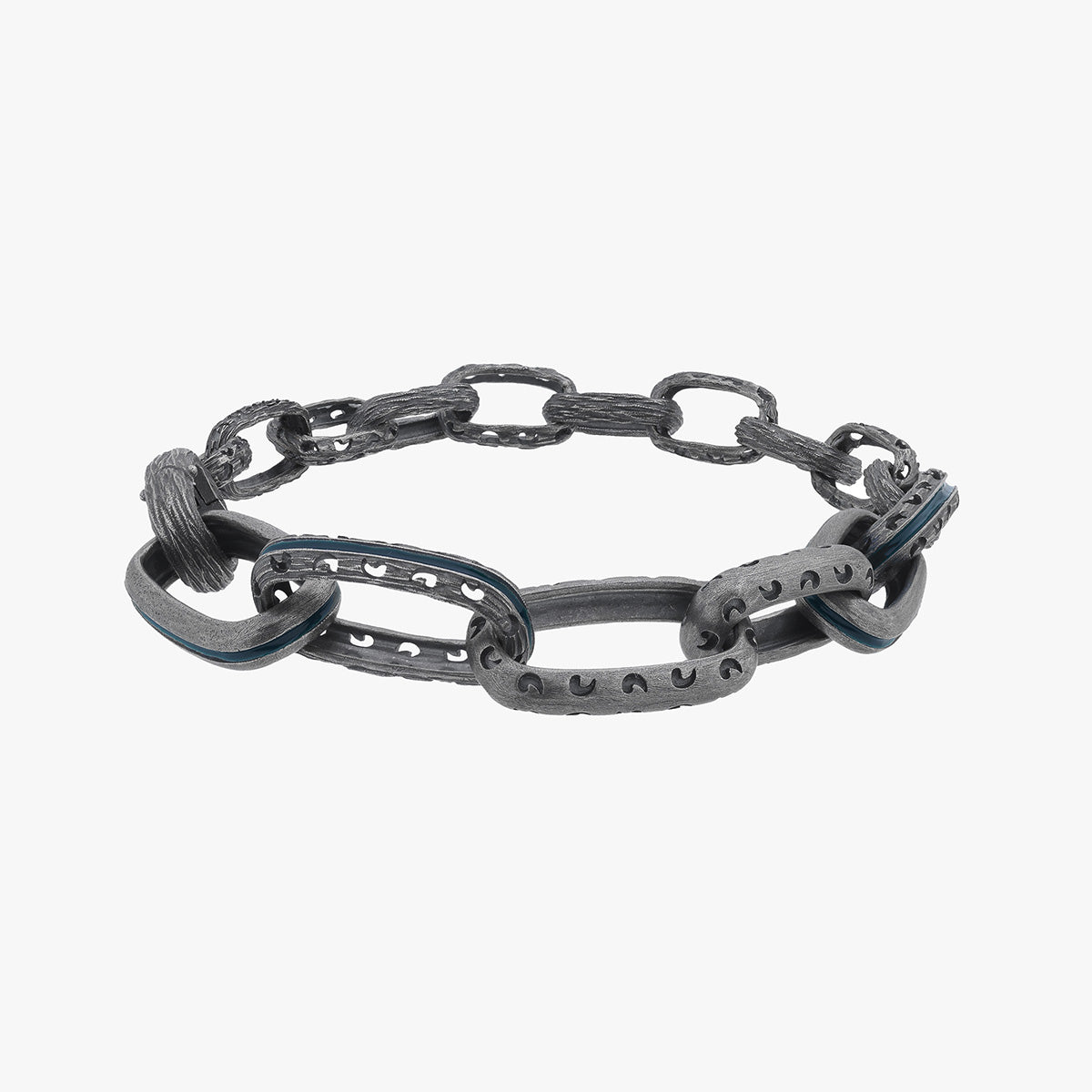 The Warrior Bold Link Green Enamel Bracelet combines rugged oxidized silver with a striking green enamel finish. This bold accessory is perfect for men looking to stand out with a touch of color in their wardrobe.