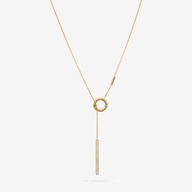 This stunning Warrior Dangle Hoop Necklace in 18kt yellow gold is adorned with 1.82 carats of rare green tsavorite, bringing a vibrant and unique touch to any jewelry collection. Designed for the sophisticated woman, this piece is perfect for both day and evening wear.