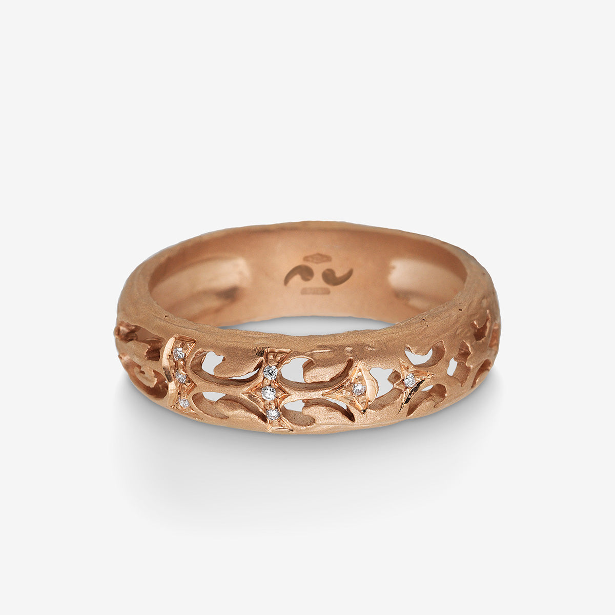 This narrow band in 18K rose gold with 0.07ct white diamonds is perfect for those who seek a balance of classic and contemporary luxury.