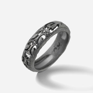 The Warrior Filigree Ring in 18K white gold and white diamonds exudes timeless elegance with a sleek, minimalist design featuring 0.07ct white diamonds.