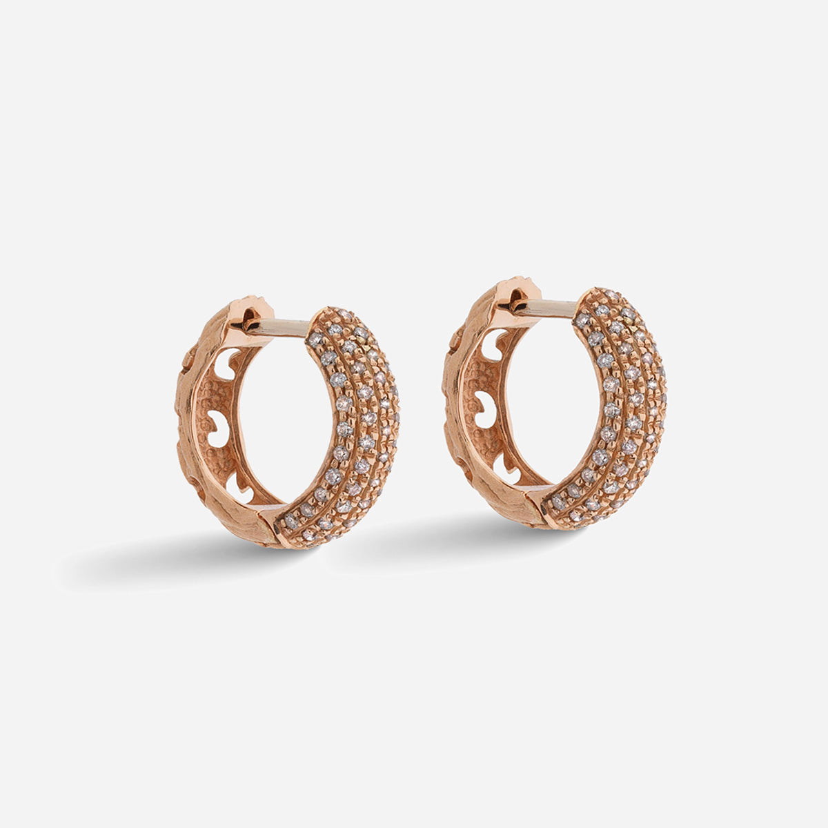 This Warrior Pavé Hoop Earring in 18K rose gold showcases 0.46ct champagne diamonds, offering a luxurious and bold design.